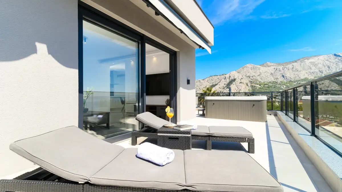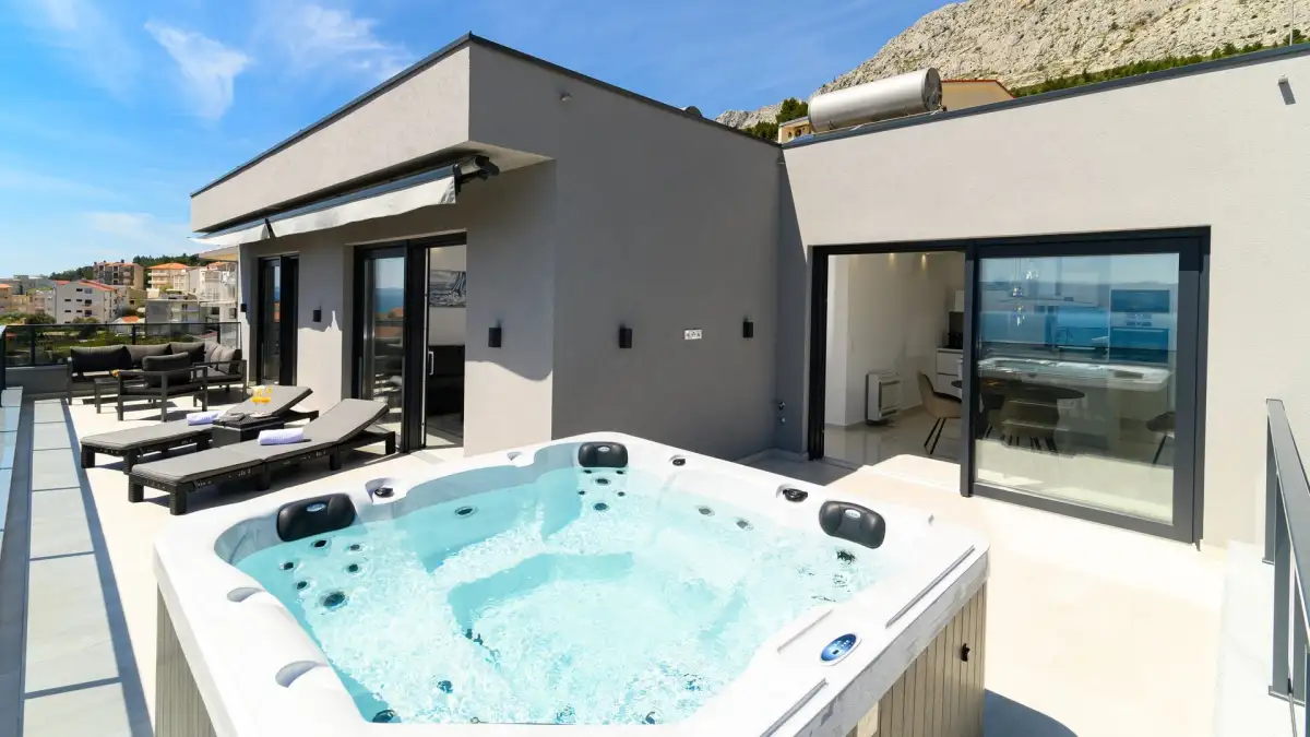 Čtvrté patro zaujímá luxusní penthouse s prostornou terasou a vířivkou, ideální pro soukromý odpočinek s naprosto nerušeným výhledem na mořský horizont.
