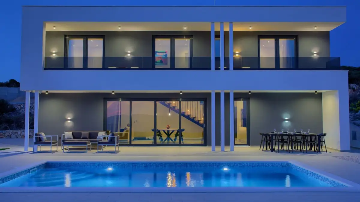 Nabízíme k prodeji moderní luxusní vilu situovanou na vyvýšeném a klidném místě s nerušeným výhledem na moře a okolní nedotčenou přírodu. Tato elegantní nemovitost nabízí kombinaci vysokého komfortu, špičkových materiálů a sofistikovaných technologií, a představuje tak výjimečnou příležitost pro náročné klienty hledající jedinečné bydlení v harmonii s přírodou.