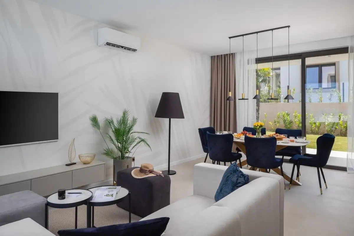 Díky umístění v rámci soukromého resortu mají budoucí majitelé přístup ke všem jeho službám. K dispozici je recepce, restaurace, společný bazén přímo u moře a v letních měsících i aquapark, což činí z této nemovitosti ideální volbu nejen pro rodinné pobyty, ale i jako investici do prémiového rekreačního pronájmu. Resort je navržen s důrazem na pohodlí, bezpečnost a soukromí svých rezidentů.