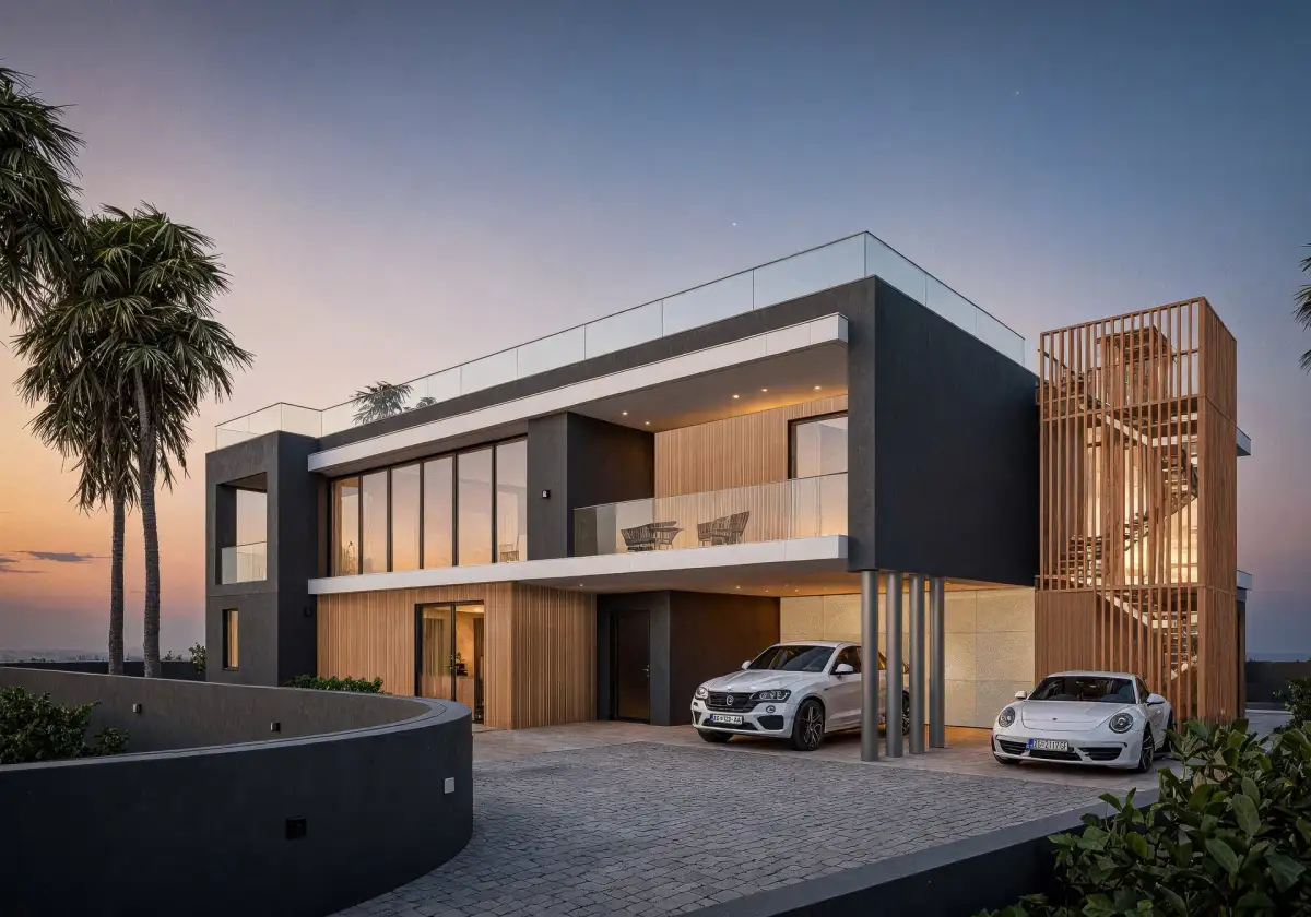 V projektu se klade velký důraz na technické zpracování a kvalitu provedení. V ložnicích jsou dřevěné podlahy a ve všech ostatních místnostech a venkovních plochách použita italská keramika. K domu náleží garáž pro dva vozy a další parkovací stání pro dvě auta na pozemku.
