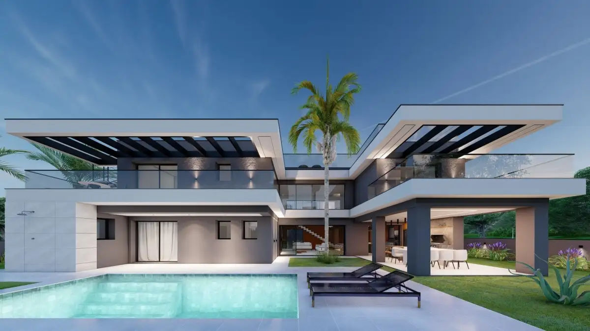 Přízemí disponuje ložnicí s vlastní koupelnou, obývacím pokojem propojeným s jídelnou a kuchyní a vstupem na venkovní terasu. Je zde technické zázemí objektu a úložné prostory. V 2.NP jsou tři další ložnice, z nichž každá disponuje vlastní koupelnou a vstupem na prostornou terasu s výhledem na moře. Střešní terasa nabízí prostor k relaxování a trávení času s přáteli a rodinou, s překrásnými výhledy na celé pobřeží a možností umístění zde vířivky. Na zahradě je k dispozici vyhřívaný bazén.