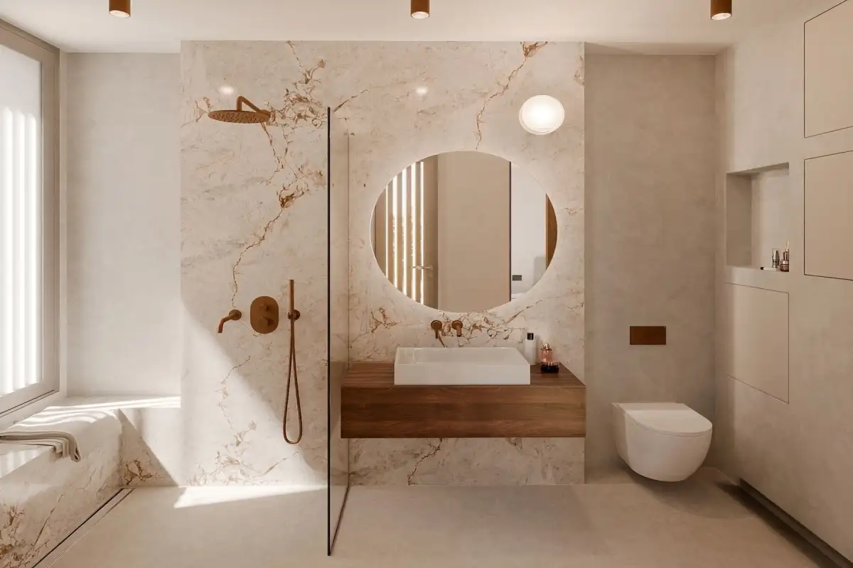 V přízemí se nachází prostorný obývací pokoj s jídelnou, který plynule navazuje na terasu s vyhřívaným nekonečným bazénem a panoramatickým výhledem na moře. Kuchyň, která je navržena jako otevřený prostor, má přímý vstup na venkovní grilovací zónu. Součástí přízemí je také ložnice s vlastní šatnou a koupelnou, toaleta pro hosty a vstup do pečlivě upravené zahrady na severní straně.