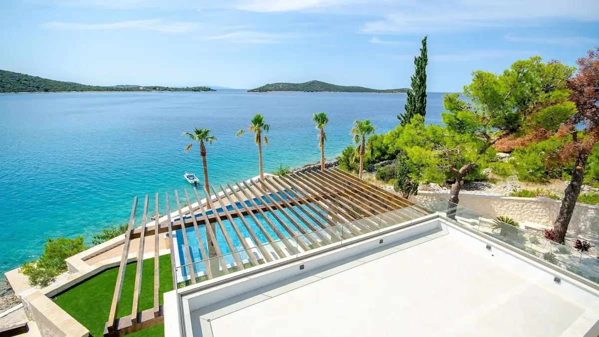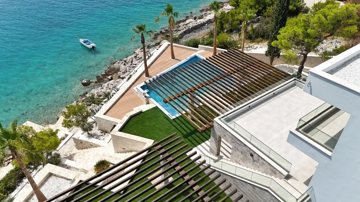 Nabízíme k prodeji nově postavenou luxusní vilu která se nachází přímo v první řadě u moře a nabízí výjimečnou kombinaci středomořského klidu a špičkového komfortu. Situovaná na prostorném pozemku o velikosti 1 483 m², je obklopena panenskou přírodou a otevřeným výhledem na moře, který umocňuje exkluzivitu celé nemovitosti.