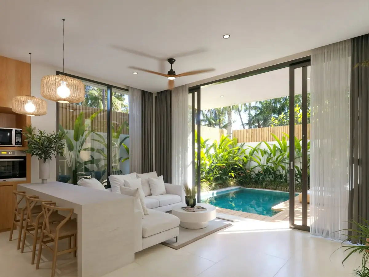 Představujeme vilu o dispozici 3+kk a celkové ploše 144 m², která je součástí komorního projektu The Bayuh Oases – butikového souboru šesti soukromých vil situovaných v klidné rezidenční oblasti Tumbak Bayuh, v blízkosti oblíbené lokality Canggu.