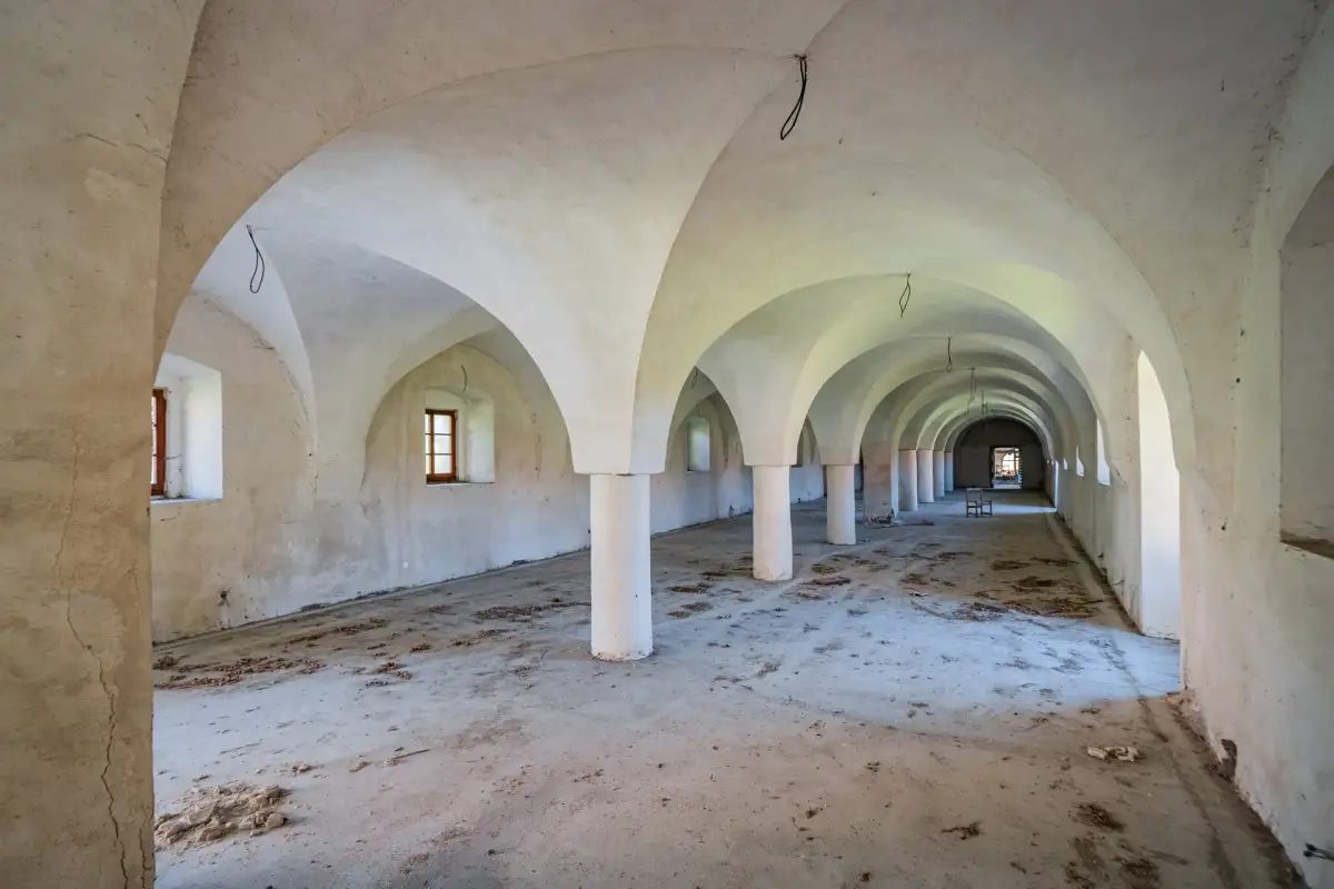 Největší z hospodářských budov o užitné ploše cca 2.000 m² již byla částečně rekonstruována. Dispozice této budovy jsou určené pro občanskou vybavenost (vhodné například pro ubytovací či zdravotnické zařízení), stejně tak i ostatní budovy v areálu (sýpka a chlév) jsou určené k občanské vybavenosti. Rozlehlé klenuté prostory v přízemí nabízejí možnost vybudovat zde například restauraci, konferenční sály, fitness studio a lázně. Je zde příprava na impozantní bazén. Půdní prostory s arkýři lze adaptovat na hotelové pokoje nebo byty.