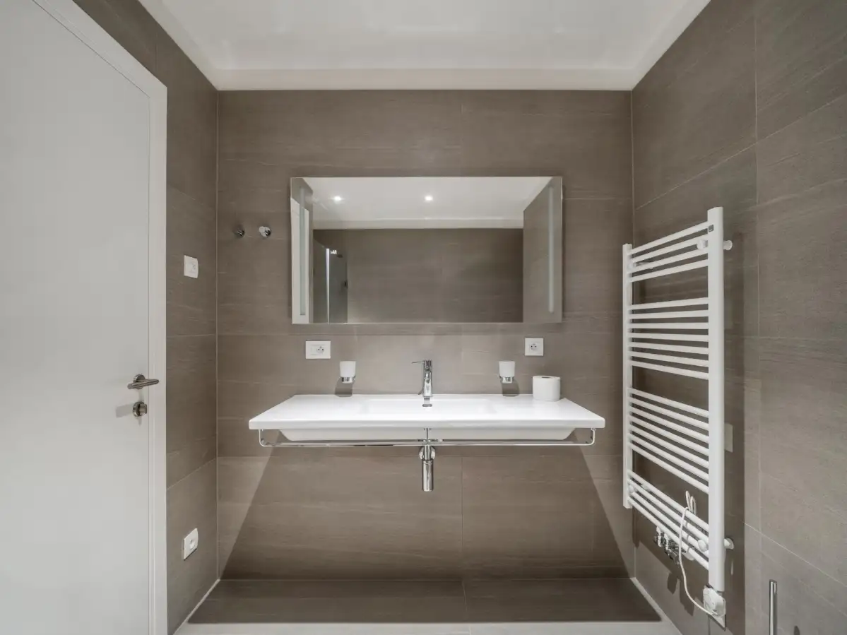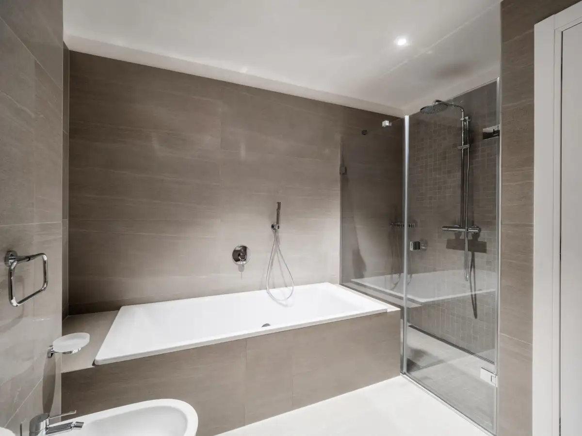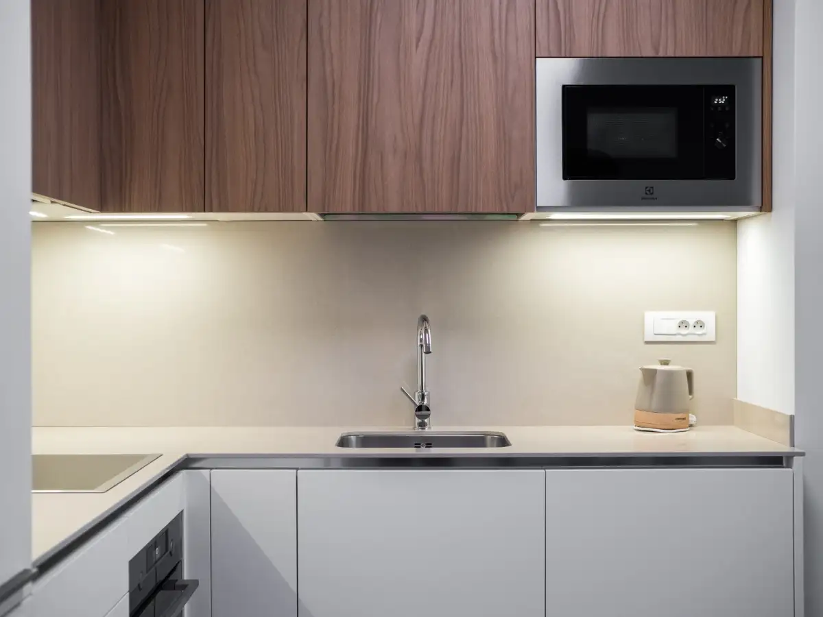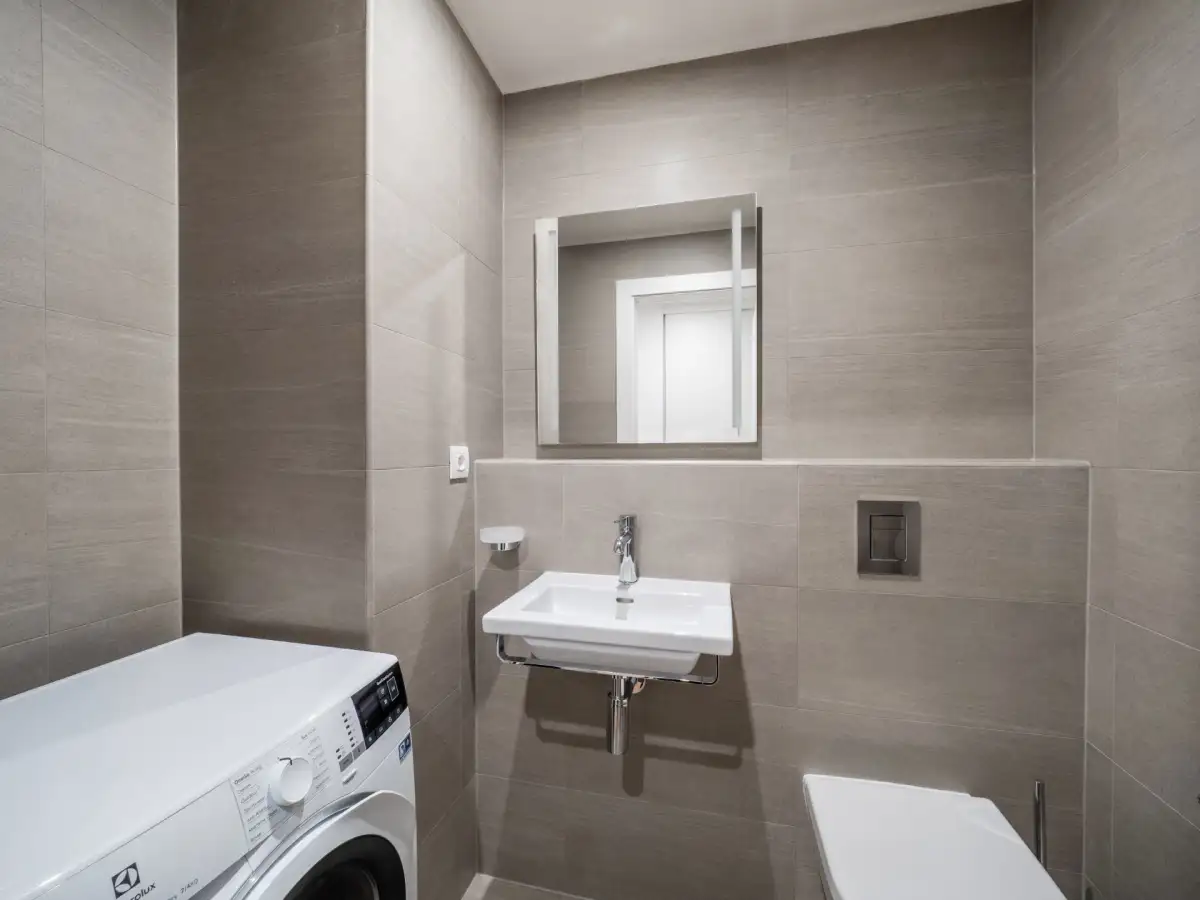 Dispozice zahrnují prostornou a světlou obývací místnost, moderní kuchyňský kout nadstandardně vybavený všemi spotřebiči, ložnici s vlastní koupelnou s vanou, sprchovým koutem, toaletou a bidetem, předsíň a oddělenou toaletu s pračkou.