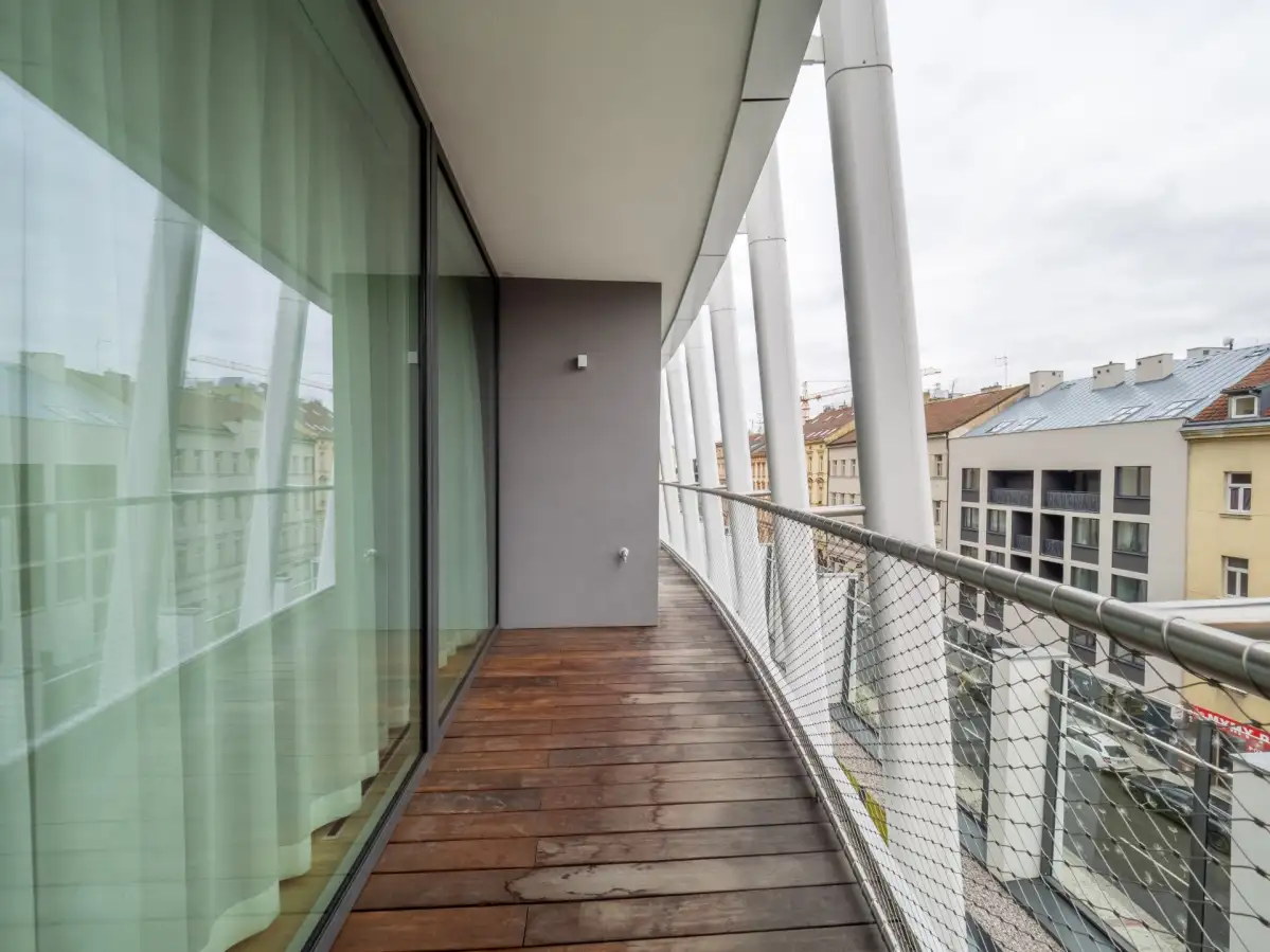 Nabízíme k pronájmu kompletně zařízený klimatizovaný byt 2+kk o užitné ploše 72 m² s terasou v 5. podlaží novostavby rezidenčního projektu, který se nachází na Praze 5 - Smíchov. Rezidence s výtahem a množstvím nadstandardních doplňkových služeb jako je recepce, bazén, wellness za příplatek, prisma institut fitness a rozlehlá společná zahrada v uzavřeném vnitrobloku. Za příplatek lze pronajmout parkovací stání v podzemních garážích. Součástí nájmu je úklid dvakrát měsíčně včetně výměny ložního prádla a ručníků