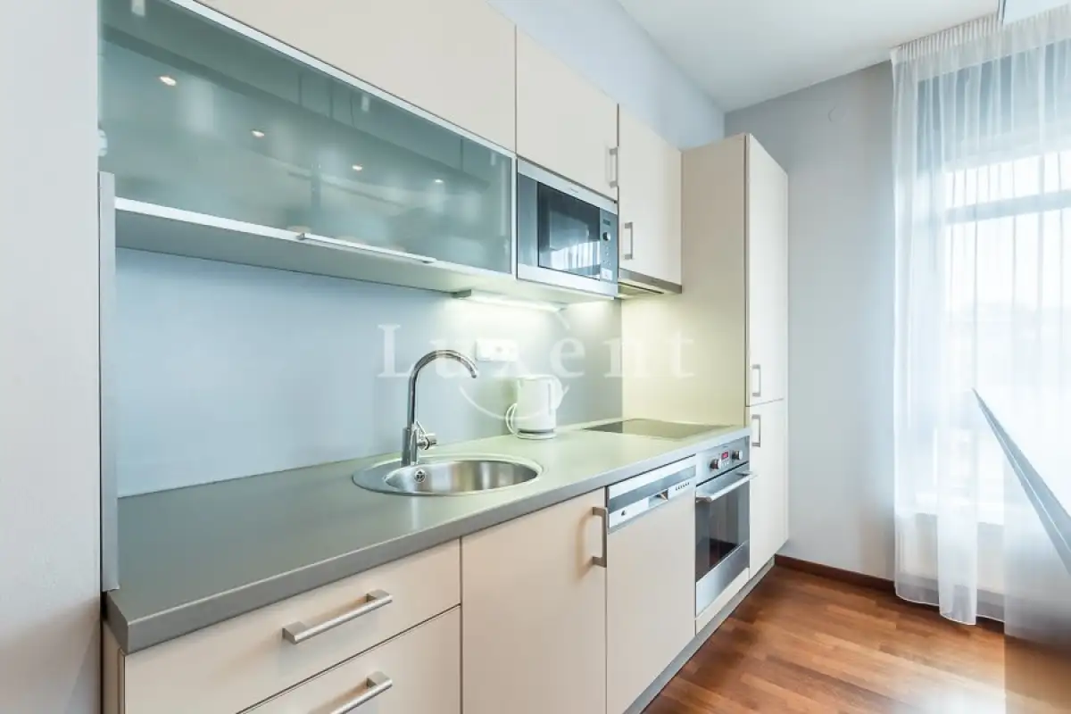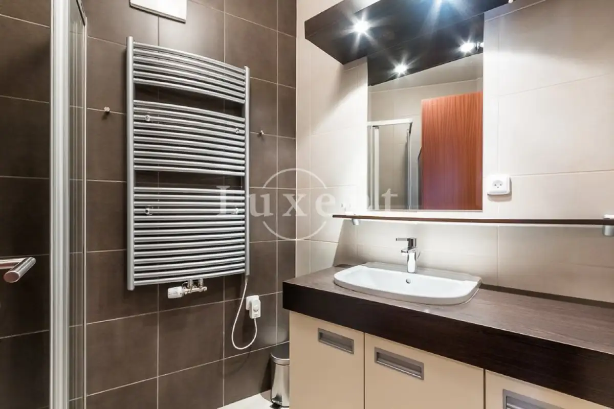 Byt je plně vybaven všemi spotřebiči, nádobím a spoustou úložného prostoru. V koupelně je sprchový kout, pračka a sušička. Podlahové topení v koupelně přispívá k pocitu dokonalého pohodlí.
