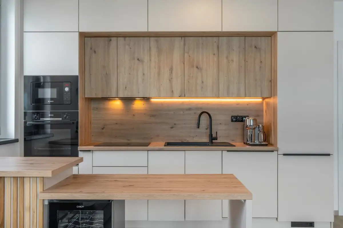 Kuchyň je vybavena spotřebiči značky Bosch – indukční varnou deskou, digestoří, horkovzdušnou a mikrovlnnou troubou, myčkou, lednicí s mrazákem a nadstandardně také kávovarem Nespresso a vinotékou. Všechna okna jsou opatřena venkovními roletami. Obývací pokoj je klimatizován.