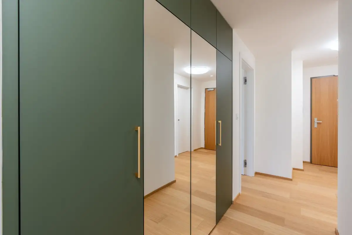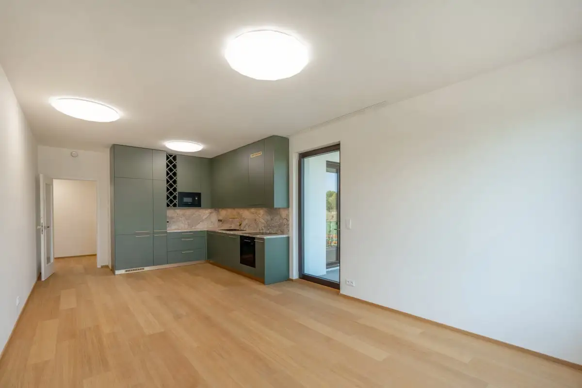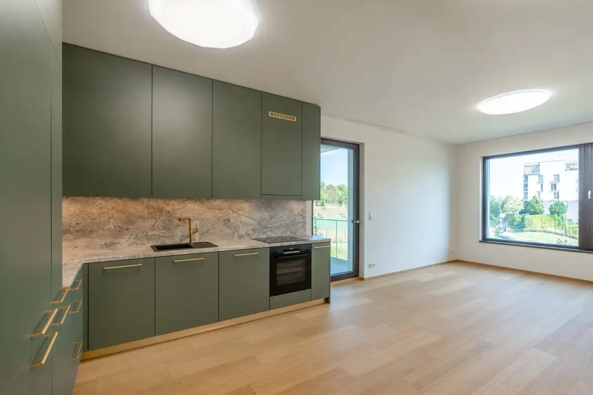 Byt bude částečně vybaven vestavěnými skříněmi. Kuchyňská linka včetně spotřebičů je samozřejmostí. Pro více informací o interiéru a dalších dostupných bytech v projektu kontaktujte makléře.