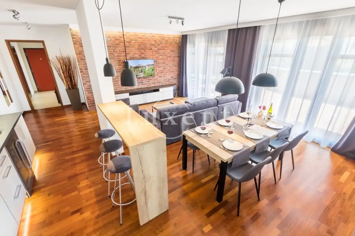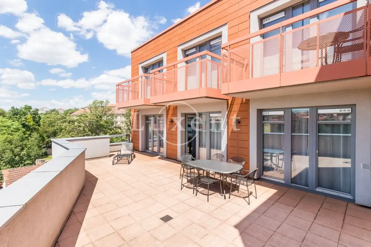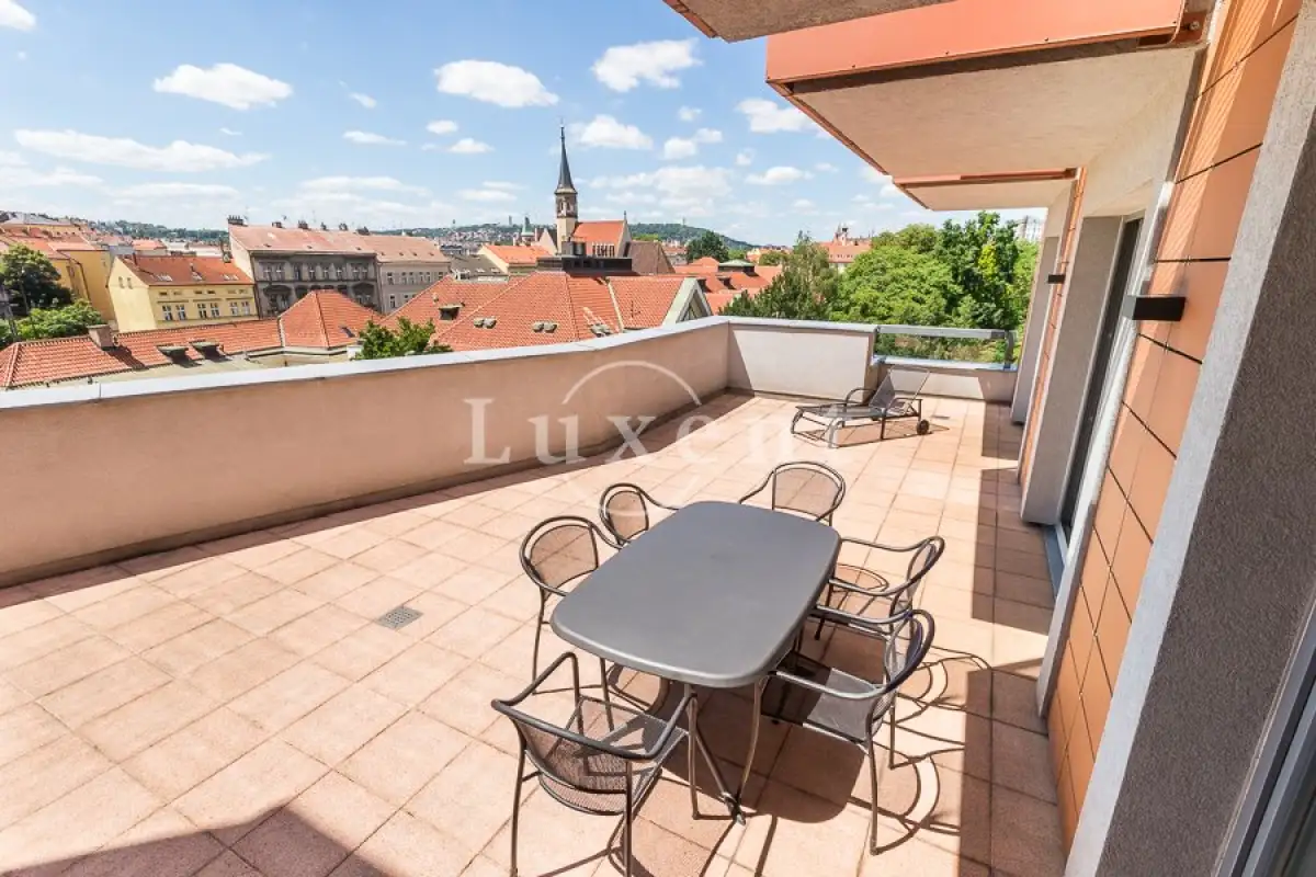Nabízíme k pronájmu moderně zařízený byt 4+kk o obytné ploše 116 m2 s balkonem a prostornou terasou. Nachází se v udržovaném apartmánovém komplexu s vlastní vinicí, přístupným altánem a recepcí. Nemovitost nabízí výhledy na Vyšehrad a historickou zeď oddělující komplex od hluku města.