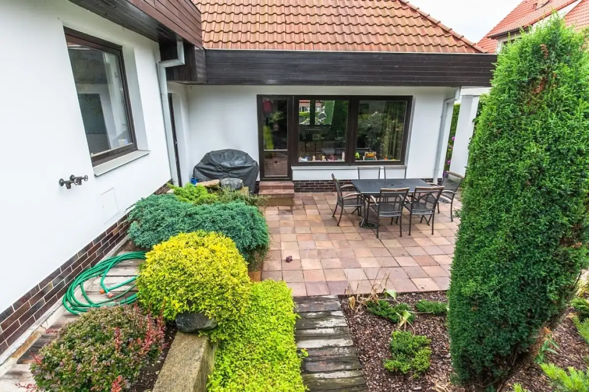 Nabízíme pronájem luxusního a prostorného rodinného domu v klidné lokalitě vilové čtvrti v Praze 4 – Kunraticích. Dům je zasazen v krásné zahradě s plochou 1000 m² a skýtá tedy dostatek soukromí. Na pozemku jsou dvě venkovní parkovací místa, další parkovací místo je s přístřeškem, dům disponuje jednou garáží, dostatek parkovacích míst je i před pozemkem na ulici.