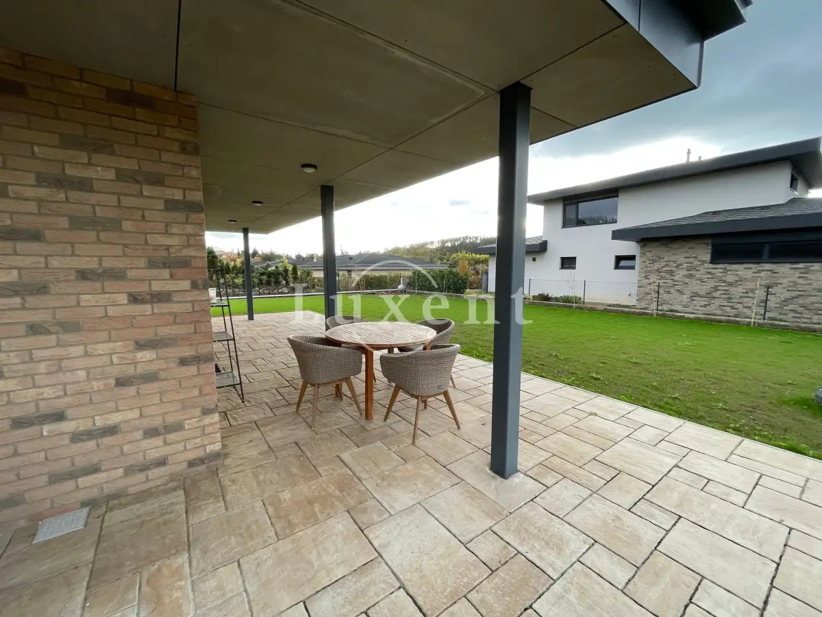 Nabízíme k pronájmu částečně vybavenou novostavbu moderního domu s dispozicí 4+kk a užitnou plochou 206 m2 v žádané lokalitě města Pyšely, okres Benešov u Prahy. Jednopodlažní nízkoenergetický dům disponuje vlastní zahradou o velikosti 1 144 m2 s terasou a posezením. Garáž pro jeden vůz, před garáží možnost dalších dvou parkovacích míst.