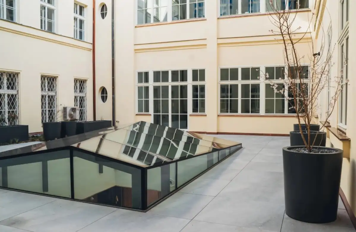Nabízíme k pronájmu exkluzivní kancelářské prostory v prestižní lokalitě na ulici Na Příkopě, Praha 1. Tento luxusní butikový projekt kombinuje elegantní nákupní galerii v nižších patrech s reprezentativními kancelářemi ve vyšších podlažích, přičemž obě funkce jsou na sobě zcela nezávislé. Jsou zde kancelářské prostory o rozloze od 300 m² do 1 116 m² a terasa k pronájmu.