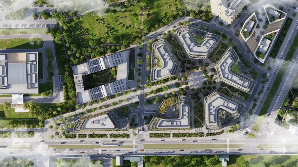 Unikátní urbanistickou koncepci projektu navrhl jeden z nejvýznamnějších světových krajinářských architektů Michel Desvigne. Tato známá pražská lokace je vzdálena dvě minuty od metra Želivského, zároveň na tramvaji. Projekt je obklopen 350 000 m² zelených ploch a bude symbolem nového standardu budoucnosti.