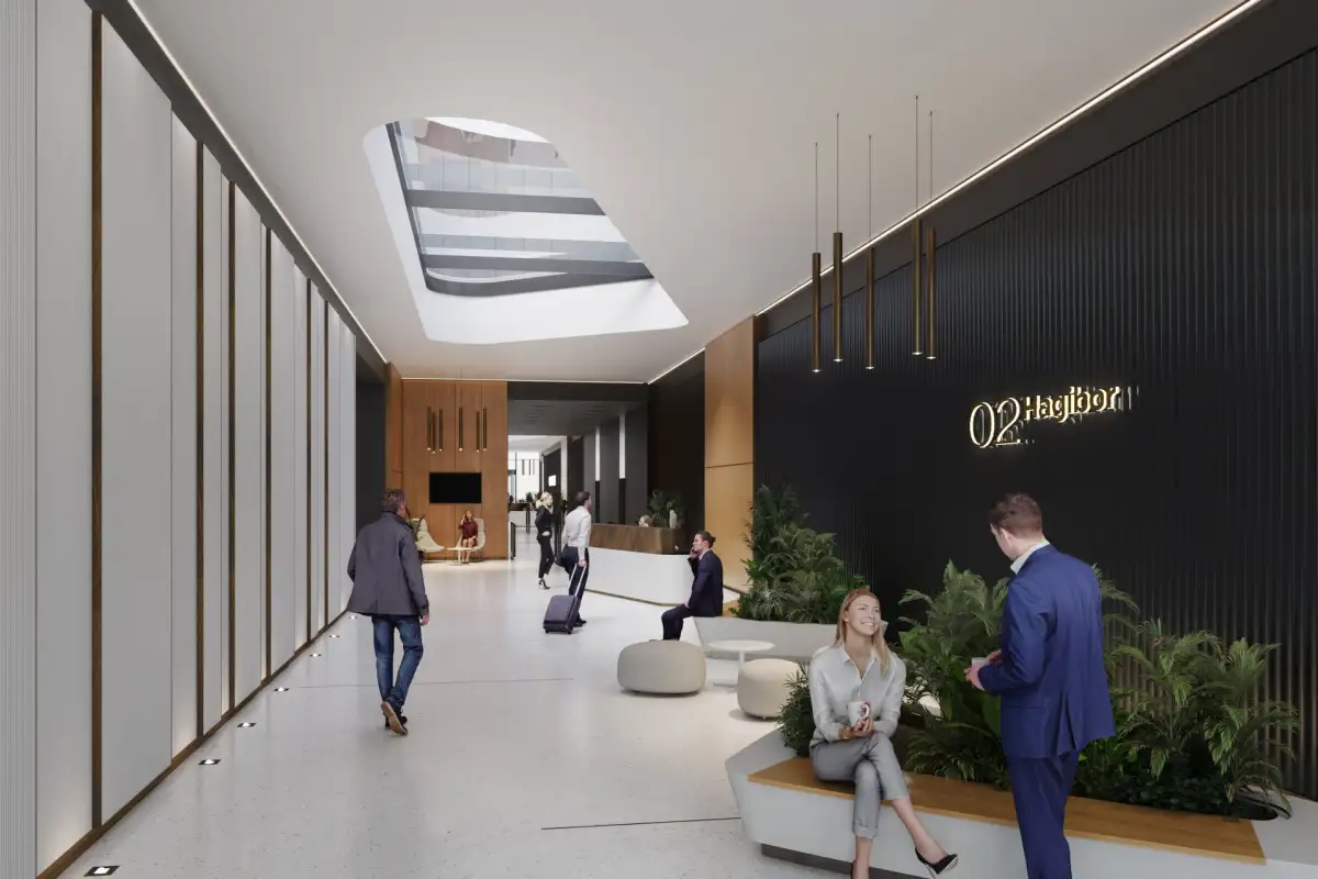 Kancelářské budovy nabízí úchvatné výhledy, které lze pohodlně vychutnat z jejich teras, jsou patrově propojeny výtahy s inteligentním řízením, zastřešeny moderní recepcí 24/7 a zabezpečeny přístupovým systémem přes aplikaci. Zdvojené podlahy s podlahovými elektro krabicemi včetně zásuvek. Čistá podlahová výška je 3 metry v kancelářích a 2,7 metrů na chodbách.