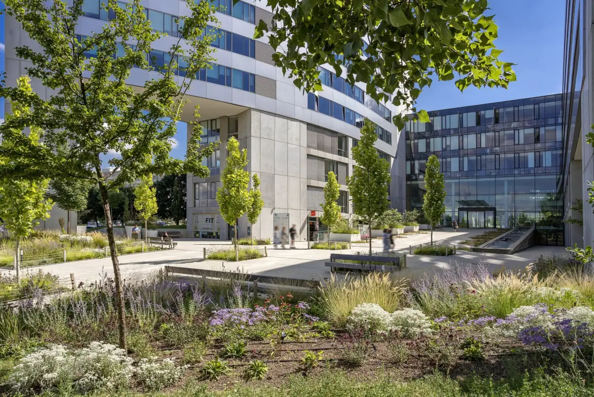 Budova je vybavena širokou škálou moderních zařízení a služeb, které zajišťují komfortní a bezpečné pracovní prostředí. K dispozici je 24hodinová bezpečnostní služba a centrální recepce, které zaručují vysokou úroveň ochrany a hladký chod budovy. Klimatizace a koberce vytvářejí příjemnou pracovní atmosféru, zatímco interní žaluzie umožňují regulaci světla dle potřeby. Technologická infrastruktura zahrnuje optická vlákna pro rychlé a spolehlivé internetové připojení a systém přístupu na magnetické karty, který zajišťuje moderní a bezpečný přístup. Otevíratelná okna přinášejí možnost přirozeného větrání, což přispívá ke zdravému pracovnímu prostředí. K dispozici je dostatečné množství parkovacích míst, což zajišťuje pohodlný přístup pro zaměstnance i návštěvníky. Budova je vybavena výtahy pro snadný přesun mezi podlažími. Pro optimalizaci využití prostoru jsou instalovány zdvojené podlahy a snížené podhledy, které umožňují efektivní vedení kabeláží a zlepšují akustické vlastnosti interiérů. Tato kombinace zázemí dělá z budovy ideální místo pro moderní kancelářské aktivity.