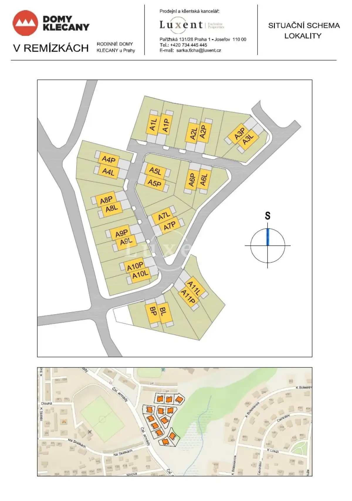 Projekt 12 rodinných dvojdomů se zahradami se nachází v blízkosti Prahy, v jihovýchodní části Klecan - oblíbeného města na břehu Vltavy. Projekt architektonicky čistých domů, každý o dvou samostatných bytech s vlastní zahradou, je vzdálen jen 25 minut jízdy autem i MHD až od centra Prahy. Záměrem projektu je vytvořit příjemné autonomní rodinné bydlení v městě blízko Prahy i krásné přírody povodí Vltavy se skvělou dostupností do metropole. Pozemek projektu je mírně svažitý, jižní, všechny domy mají své zahrady a garáž. Komornost projektu je vedle kvality stavby a lokality jeho další nespornou předností. Rozprostřené rozmístění domů do trojúhelníku a posunutí vchodů do bytů v ose domu podporuje osobní soukromí obyvatel této nové rezidenční oblasti a liší se od běžné řadové zástavby.