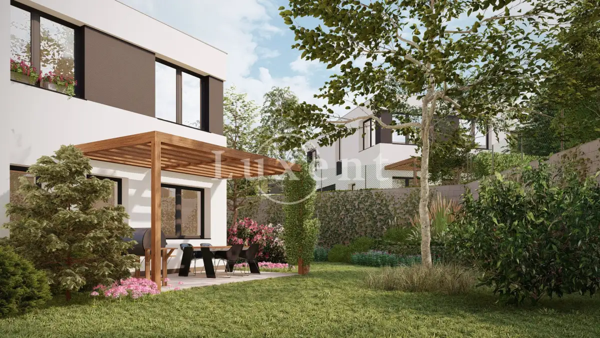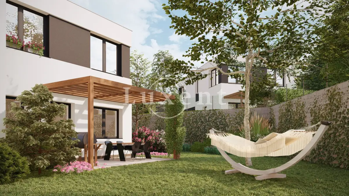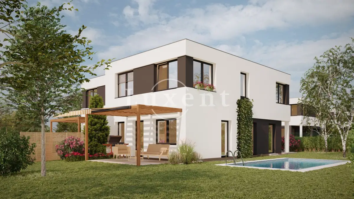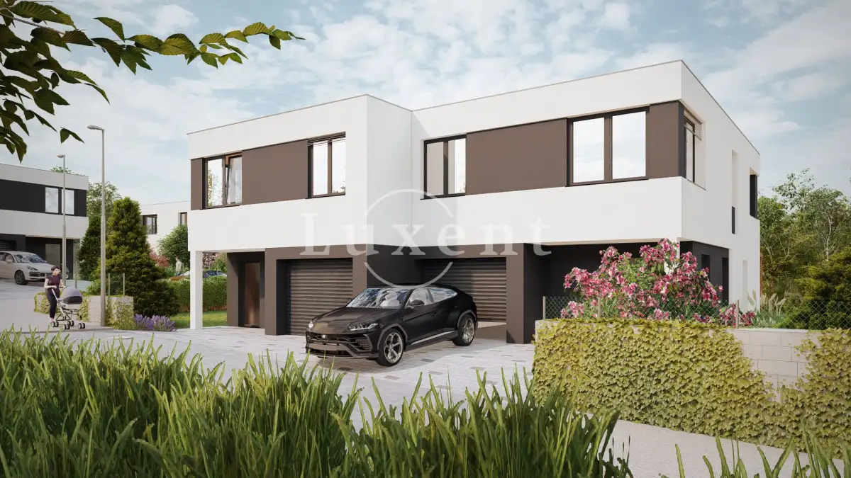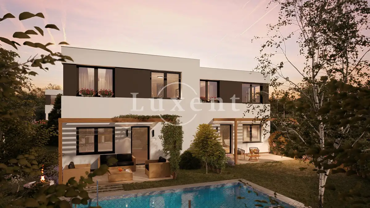 Nabízené půldomy jsou dvoupodlažní, s vlastním vchodem, se zahradou s pergolou a garáží. V přízemí je obývací pokoj s kuchyňským koutem a přípravou na kuchyni. V patře jsou pak tři ložnice, pracovna a koupelna. Standardy vybavení jsou kvalitní, budoucí majitelé si mohou ovlivnit výběr interiérových materiálů. Je zde příprava na kuchyni a klimatizační jednotky. V ceně domů je upravená zahrada s dřevěnou pergolou. Domy jsou zděné, zařízení koupelen od firmy Los Kachlos. Vytápění je plynovým kotlem. V oknech s izolačními trojskly jsou instalovány venkovní žaluzie. Domy jsou zateplené, energetická třída B. Dispozice jsou variabilní, s možností tří různých řešení.