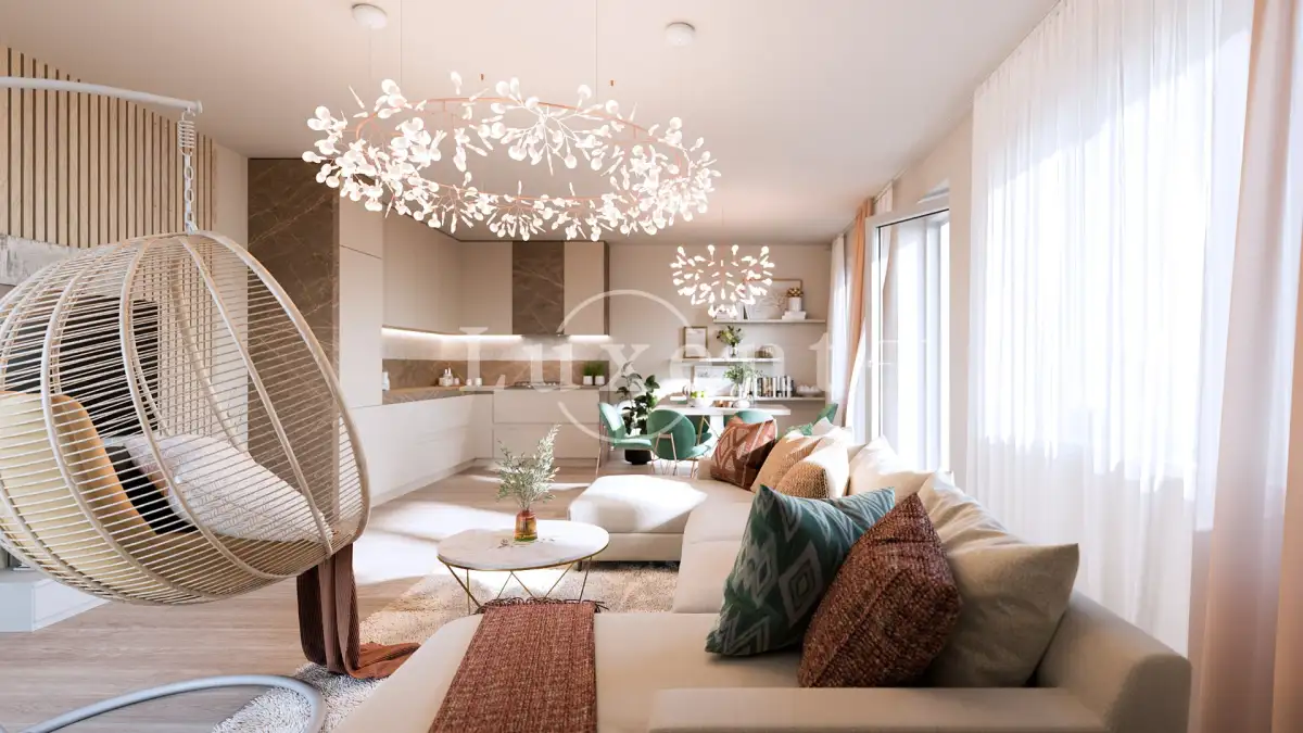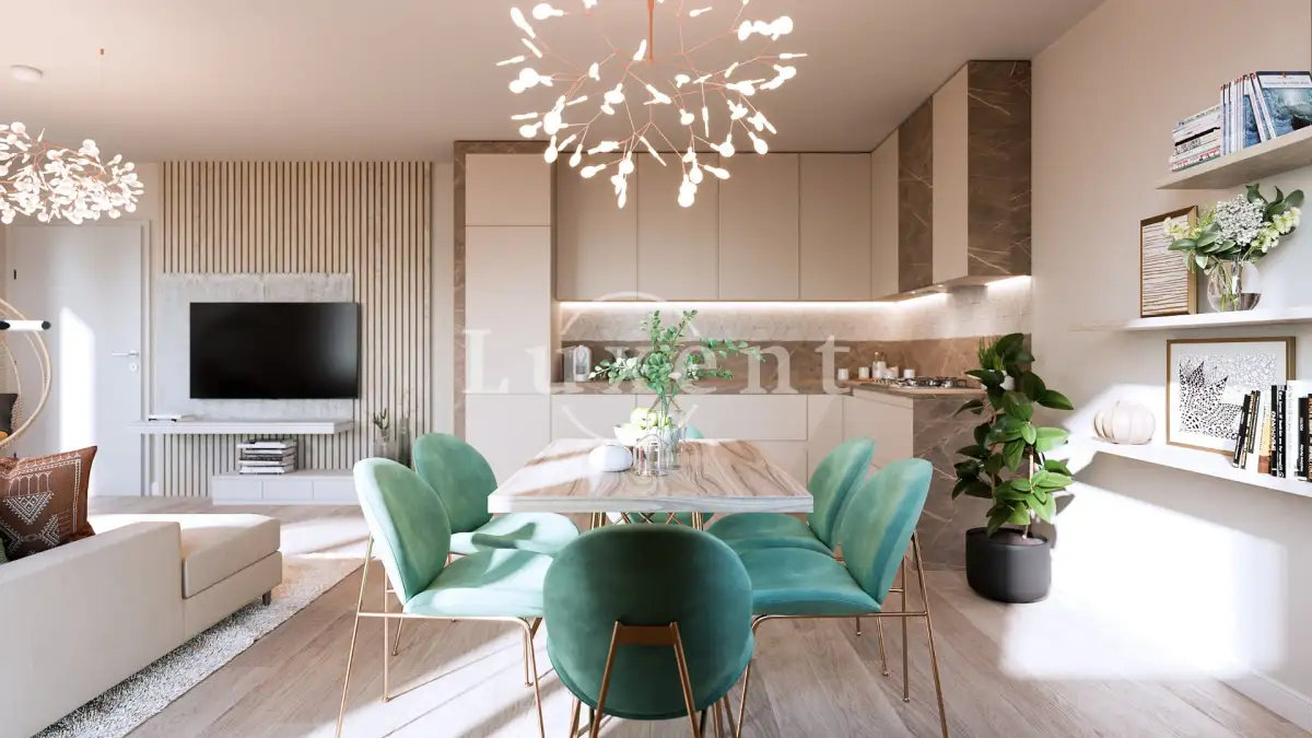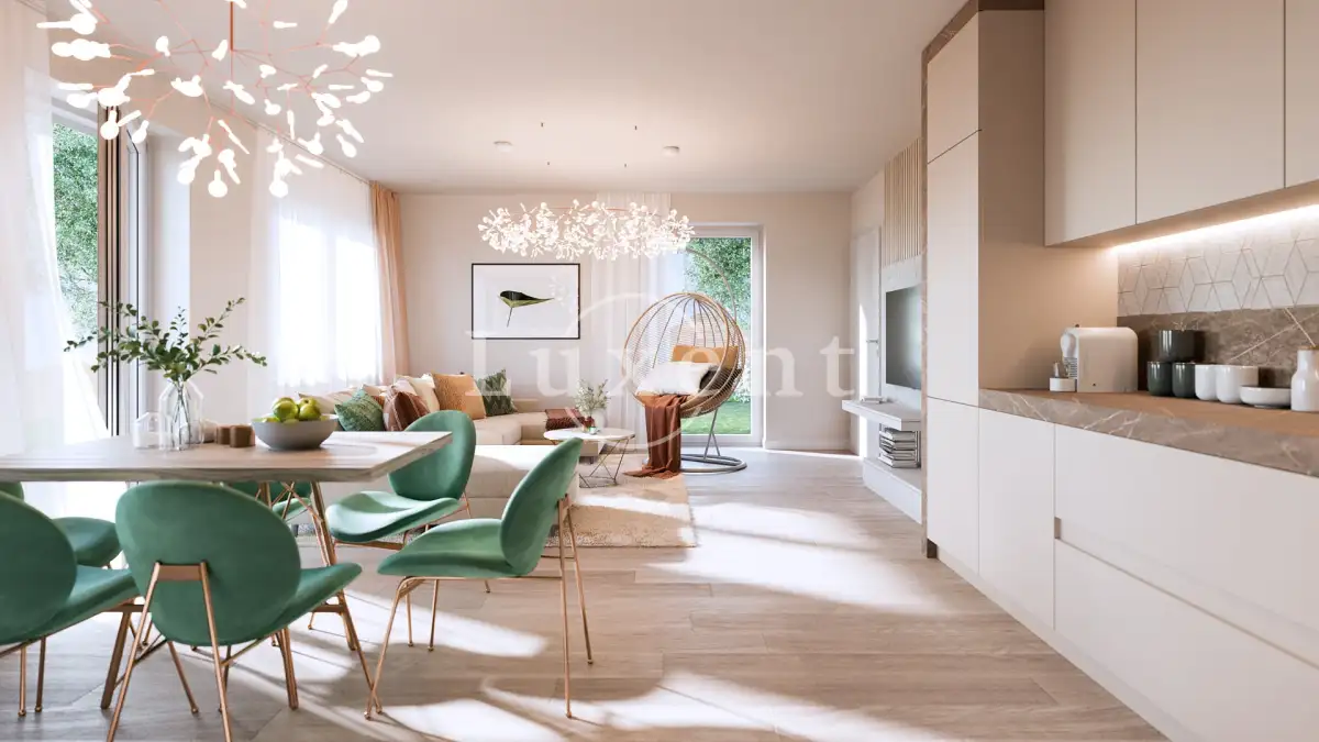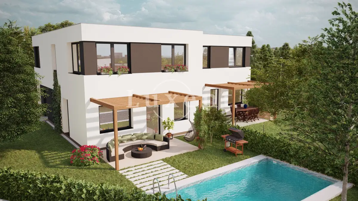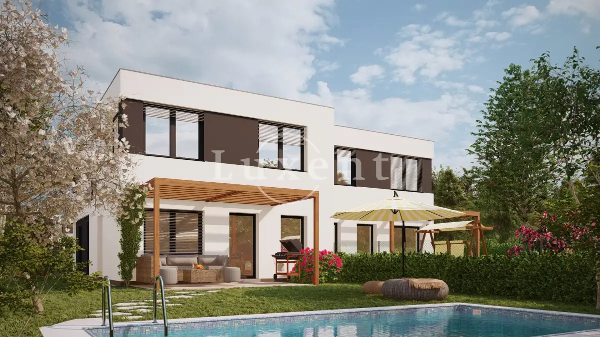 Nabízené půldomy jsou dvoupodlažní, s vlastním vchodem, se zahradou s pergolou a garáží. V přízemí je obývací pokoj s kuchyňským koutem a přípravou na kuchyni. V patře jsou pak tři ložnice, pracovna a koupelna. Standardy vybavení jsou kvalitní, budoucí majitelé si mohou ovlivnit výběr interiérových materiálů. Je zde příprava na kuchyni a klimatizační jednotky. V ceně domů je upravená zahrada s dřevěnou pergolou. Domy jsou zděné, zařízení koupelen od firmy Los Kachlos. Vytápění je plynovým kotlem. V oknech s izolačními trojskly jsou instalovány venkovní žaluzie. Domy jsou zateplené, energetická třída B. Dispozice jsou variabilní, s možností tří různých řešení.