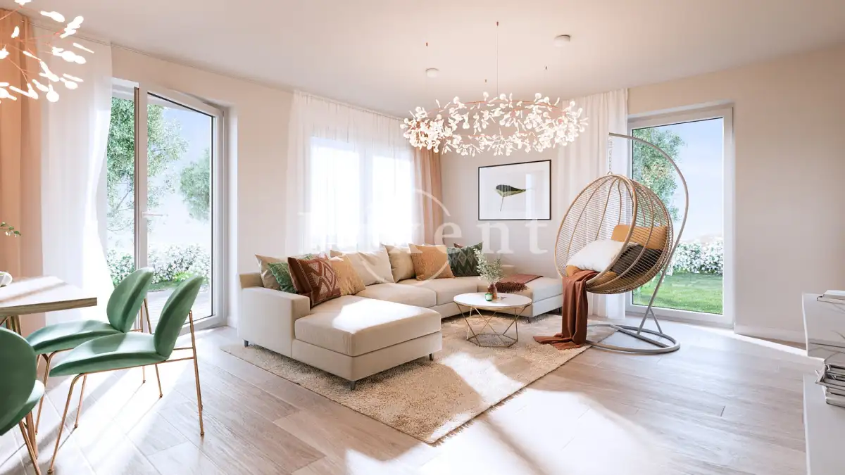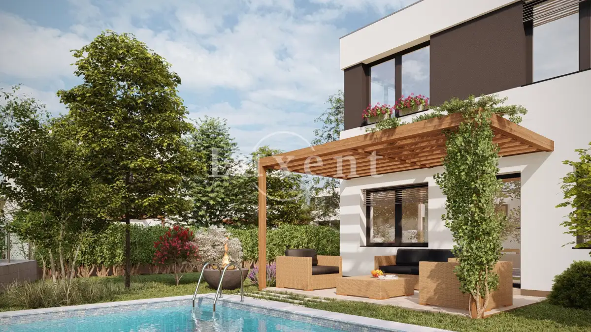 Rodinné domy v Klecanech jsou jednoduché moderní stavby, které nabízejí na svou velikost značný prostorový komfort a velkou variabilitu dispozičního řešení. Může je pohodlně obývat velká rodina se třemi dětmi nebo menší rodina s potřebou domácí pracovny. Vždy zajistí dostatek soukromí i pohodlný prostor pro setkávání, ať už v širším kruhu rodiny nebo s přáteli. Obývací pokoje jsou dostatečně dimenzované a umožňují různé varianty zařízení. V exteriéru na obývací pokoje navazují zahradní terasy stíněné dřevěnými pergolami. U pergol je provedená příprava pro elektrickou markýzu.