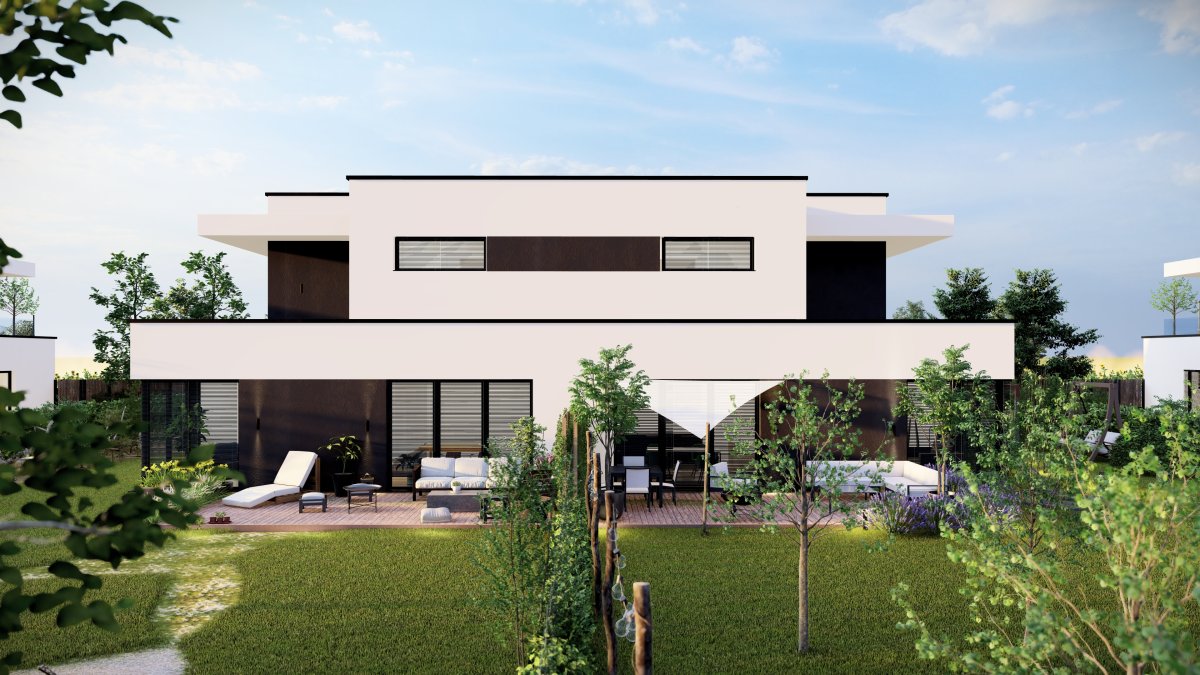 Zvýšená poptávka po rodinném bydlení nás vedla k upgradu doposud dvou-bytového řešení aktuálních RD na 3 bytové jednotky a ateliér, a to rozšířením ve 2. nadzemním podlaží, se zachovanou vysokou mírou soukromí pro jednotlivé byty. Přízemí se drží obdobného moderního a funkčního designu a náplně jako předchozí, již realizované rodinné domy s bytovými jednotkami 4+kk – pouze vyladěnější a optimalizované. Nově došlo k doplnění o 2 nové jednotky menší metráže o dispozicích 2+kk, vhodné menší rodiny jako startovací byty, nebo jako ateliér.